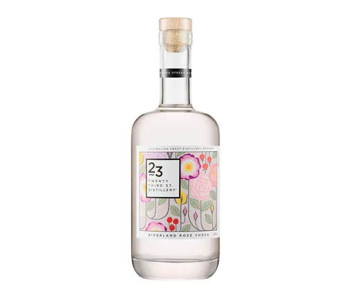 23rd Street Distillery Rose Vodka 700mL The sweet, yet bold nosed and Valentine-red ‘Mr Lincoln’ petals, along with a smattering of other mixed blooms are gathered, local and dewy-fresh, at the iconic Rustons Roses, Riverland. Macerated over time in cane based vodka, the petals offered up their heavenly essences which have been small-copper-pot distilled to otherworldly purity. The rosy tint is naturally enhanced with the merest pinch of organic hibiscus petal.