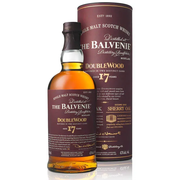 Balvenie DoubleWood 17 year old Bottling Note: Like the famous 12 year old expression this Balvenie has been matured in two types of cask, the key difference this has been given an extra five years of cask ageing. A great release for 2012.