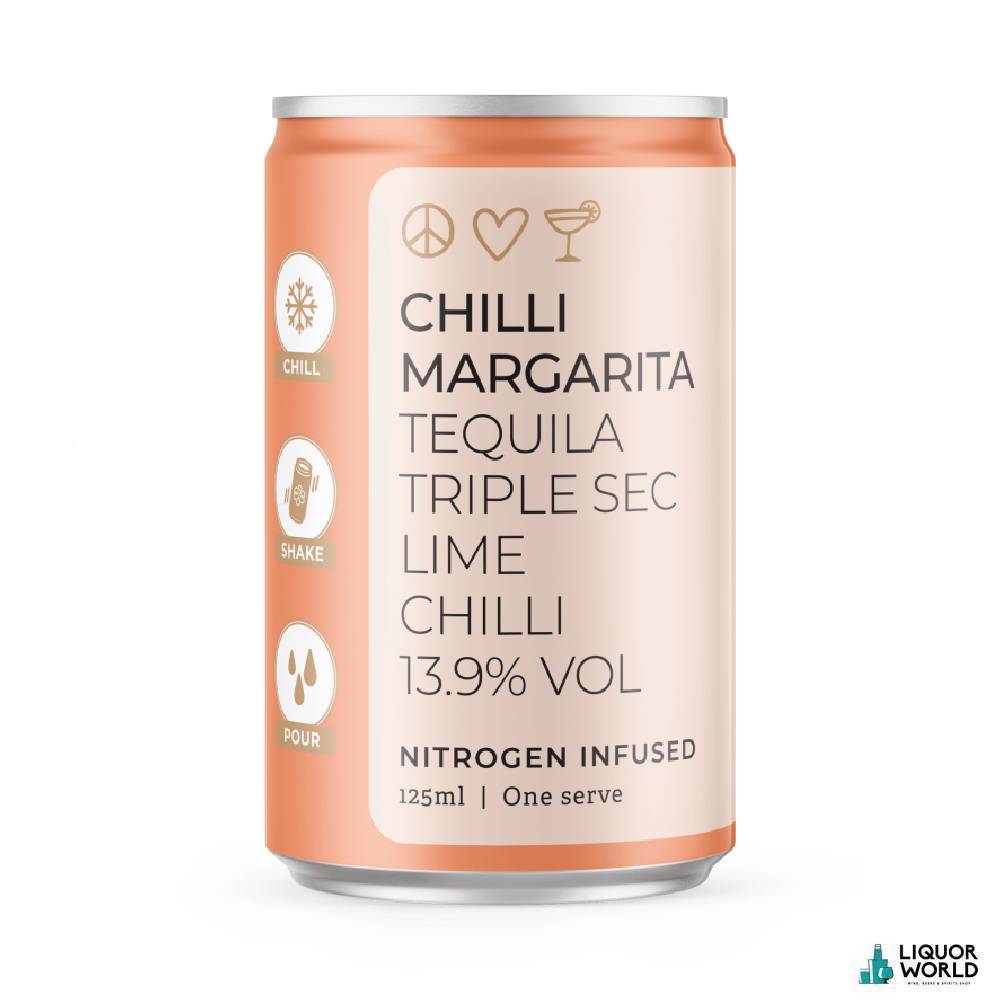Byron Bay Spirits Chilli Margarita is a spicy twist on the classic Margarita, made with premium tequila, triple sec, real lime juice, and a kick of chilli heat. Expertly balanced to deliver vibrant citrus brightness with warming spice, this ready-to-drink cocktail offers a bold, flavour-packed experience in a convenient can. Bottled at approximately 13.9% ABV and available in a case of 24, it’s perfect for outdoor gatherings, barbecues, or adventurous sipping.