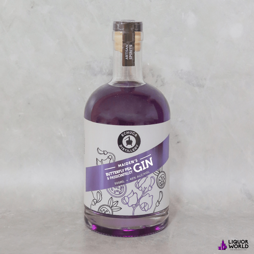 Echuca Distillery Maiden’s Butterfly Pea & Passionfruit Gin 40% ABV 500ml – 2 Bottle Pack