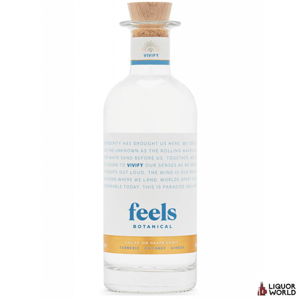 Feels Botanical Vivify is a vibrant and invigorating Eau de Vie spirit, crafted using a grape-based distillate and infused with a distinctive selection of botanicals, including turmeric, coconut, and ginger. This harmonious blend delivers a warm, spiced character with tropical undertones, making it a versatile choice for sipping or mixing in creative cocktails. Inspired by nature, Vivify offers an uplifting and refreshing drinking experience, perfect for those seeking something uniquely bold yet balanced.