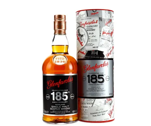A limited release from Glenfarclas To mark 185 legal years of operating the distillery, they have selected some of their finest casks from across the decades and put together a whisky with old, rich, sherried flavours that remain fresh and vibrant in your glass.