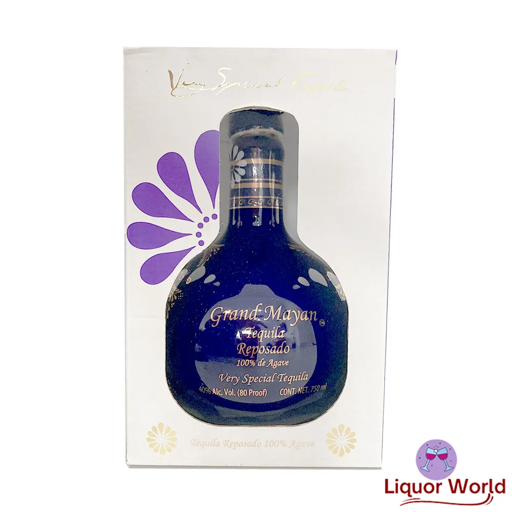 Grand Mayan Reposado Tequila 750ml is a premium aged tequila made from 100% blue agave grown in the highlands of Jalisco, Mexico. After being double distilled, it is aged for a minimum of six months in American oak barrels to give it a smooth and complex flavor profile. This tequila has notes of vanilla, caramel, and honey on the palate, with a hint of oak and a long, smooth finish. The bottle is handcrafted from crystal and inspired by ancient Mayan culture. This premium tequila is perfect for sipping neat or for creating premium cocktails.