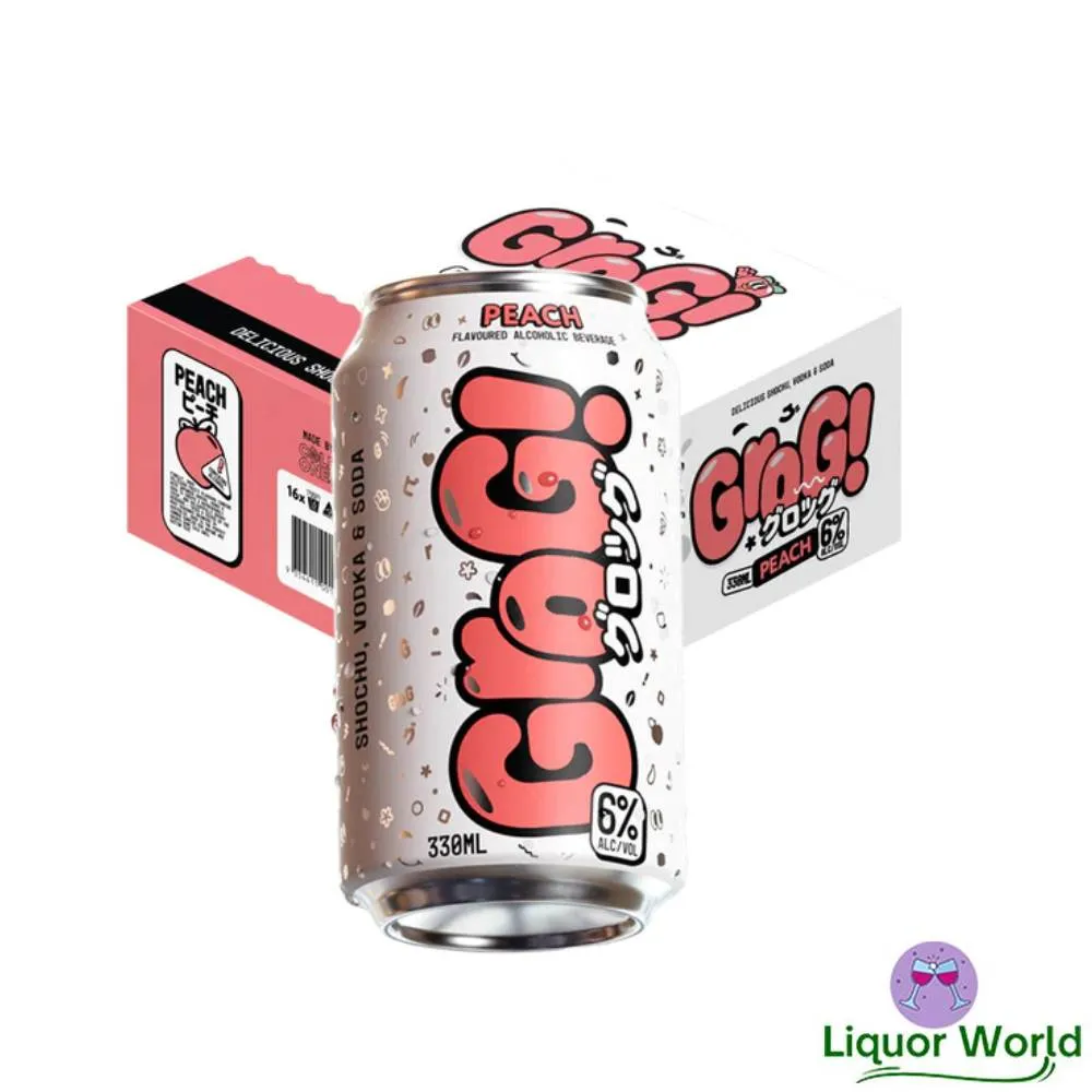 Grog Peach Flavour Premix Shochu, Vodka & Soda Cans (16 Pack) 330mL: A Peachy Fusion of Refreshment