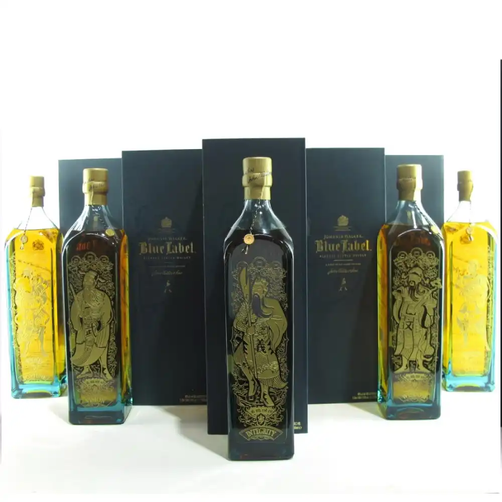 Description: Celebrate the opulence and craftsmanship of Johnnie Walker with the Blue Label Integrity Edition from the 5 Gods of Wealth Collection, elegantly presented in a luxurious 1-liter bottle. This exclusive edition pays homage to the revered Chinese deities of wealth, embodying the essence of prosperity and excellence. Johnnie Walker Blue Label is renowned for its rich, velvety smoothness and complex character, achieved by blending some of the rarest and most exceptional whiskies from Scotland. Perfect for commemorating special occasions or as a distinguished addition to any collection, this limited edition whisky promises an unparalleled taste experience.