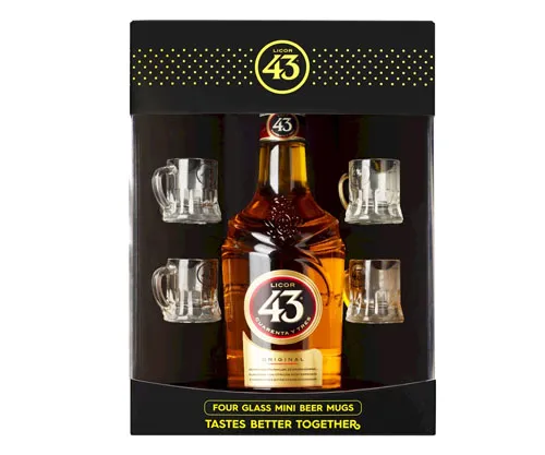 Licor 43 Liqueur with 4 Mini Beer Glass Gift Pack 700ml