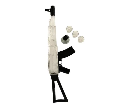 This awesome gift box includes 6 shot glasses, a grenade-shaped bottle with a pin, and an AK 47 shaped bottle of premium distilled vodka. The AK 47 bottle itself is an impressive, heavy full-size replica of an actual AK 47. It’s packed into a green wooden military-style box. This AK 47 gift box is the perfect addition to a home bar or to add to a unique bottle collection.