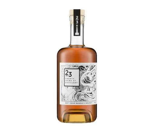 23rd Street Distillery Not Your Nannas Brandy 700mL Two years in a mix of French and American oak barrels, mostly ex-chardonnay, impart seductively rich colour, smoothness and length to this new generation brandy. Tasting note: Matured in French and American oak barrels which previously held Chardonnay. Glossy gold. Raisins, salted caramel, dates, then drier scents of fruit toast. Starts off light, building to moderate concentration with flavours of raisin slice, dried apricot, honeycombe and warming spices. Aftertaste is relatively fleeting, woody, finely tannic. A pleasant middle-weight style. 40% Alc./Vol. www.tastings.com23rd Street Distillery Not Your Nannas Brandy 700mL