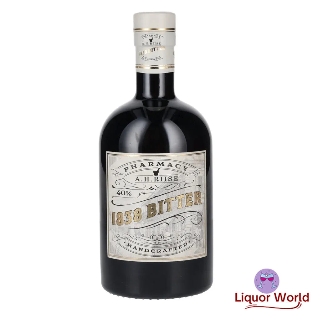 A.H. Riise Pharmacy 1838 Bitter is a premium bitter from the Virgin Islands. It is named after the Danish pharmacist, Albert Heinrich Riise, who established the first pharmacy on the island of St. Thomas in 1838. Riise was also known for his creation of a unique blend of herbs and spices, which he used to make medicinal bitters.\n\n\n\nA.H. Riise Pharmacy 1838 Bitter is made from a secret recipe of natural herbs, roots, and spices, which are macerated in a neutral spirit. The resulting bitter has a deep, amber color and a complex flavor profile, with notes of cinnamon, clove, ginger, and other spices, as well as a subtle bitterness.\n\n\n\nThe bitter is typically used as a mixer in cocktails, such as the classic Manhattan or Old Fashioned. It can also be enjoyed on its own as a digestif or aperitif.\n\n\n\nThe ABV (alcohol by volume) of A.H. Riise Pharmacy 1838 Bitter is 40%, which is slightly lower than the standard for most spirits. This means that 40% of the liquid in the bottle is pure alcohol, while the remaining 62% is made up of water and other compounds from the maceration process.