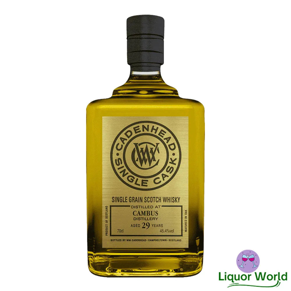 Cambus 1998 29 Year Old Cadenhead Single Cask Single Grain Scotch Whisky 700mL bottled by Cadenhead as part of their Single Cask collection. It was distilled in 1998 and aged for 29 years before being bottled. The whisky is bottled from a single cask, meaning that the flavor profile is unique to that specific cask and is not blended with whiskies from other casks. The bottle size is 700mL.
