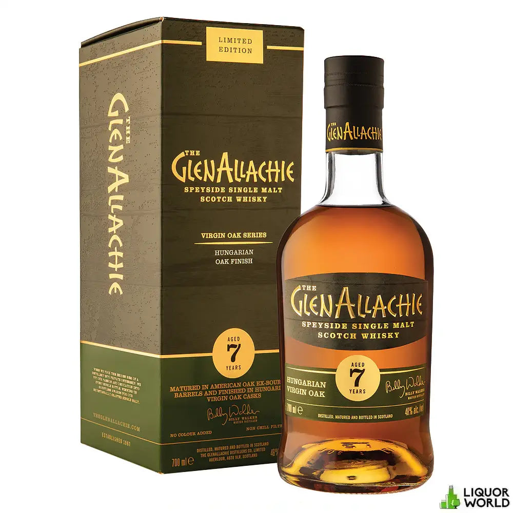 Glenallachie 7 Year Old Hungarian Virgin Oak Single Malt Scotch Whisky 700mL\n\n\n\nGlenallachie 7 Year Old Hungarian Virgin Oak is an exceptional single malt Scotch whisky that showcases the innovation and craftsmanship of the Glenallachie distillery. This unique expression has been matured in American oak casks before a final period of aging in Hungarian virgin oak, a rare and distinct finish. The result is a whisky that combines rich maltiness with the unique, spicy, and earthy qualities of the Hungarian oak, creating a complex and robust flavor profile. With its youth and bold character, this whisky is ideal for those who appreciate something truly different in their Scotch collection.\n\n- \n\n