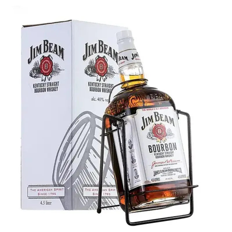 JIM BEAM WHITE LABEL & CRADLE 4.5 LITRES Bourbon is the world’s number-one selling bourbon. It has a strong family heritage with a formula unchanged in over 200 years and has been managed by over seven generations of Beam family distillers, ensuring the same consistent quality since its first production. Jim Beam Bourbon derives its rich, satisfying flavour from a treasured family recipe and is crafted longer than the law requires, for a fuller, smoother flavour. ABV 40.0%JIM BEAM WHITE LABEL & CRADLE 4.5 LITRES
