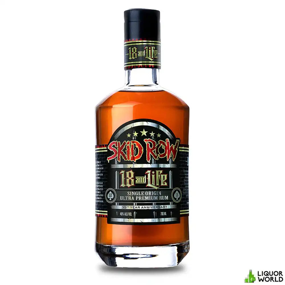 Skid Row 18 Year Old "18 And Life" Single Origin Ultra Premium Rum 700ml Celebrate the rebellious spirit with Skid Row 18 Year Old "18 And Life" Single Origin Ultra Premium Rum. This 700ml bottle encapsulates nearly two decades of craftsmanship, resulting in a rum that is both bold and refined. Sourced from a single origin and aged for 18 years, this ultra-premium rum offers a rich and complex profile that resonates with depth and character. Perfect for sipping or enhancing luxury cocktails, "18 And Life" is a tribute to those who live life with intensity and passion, making it an iconic addition to any spirits collection.- Brand: Skid Row