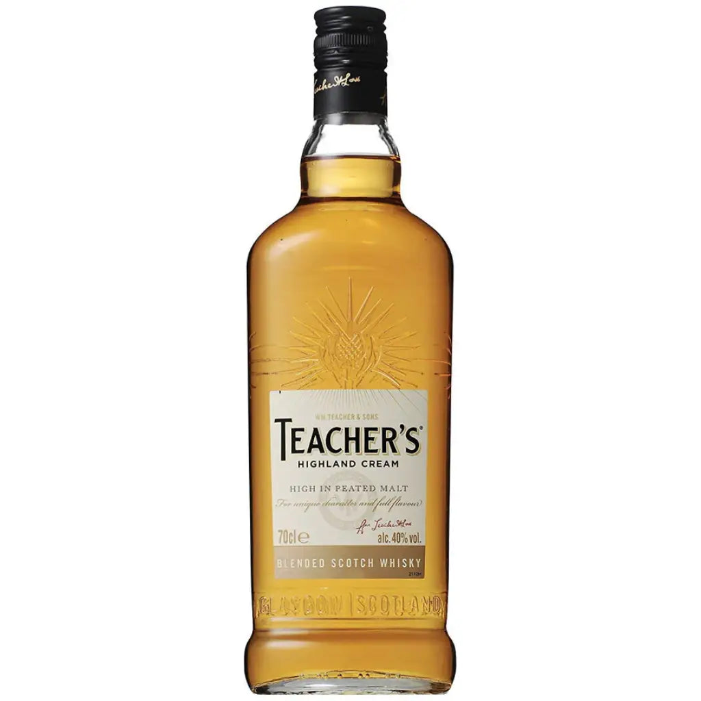 Teachers Highland Cream Blended Scotch Whisky 700ml William Teacher started work in a cotton mill aged seven; in 1830 he was employed by a small grocer in Glasgow. After marrying the owner’s daughter, he managed to arrange a liquor licence and opened his first 'dram shop'. These were well maintained public houses selling reasonable spirits. Twenty years later, Teacher was officially recognised as the largest licence holder in Glasgow. The Teachers Highland Cream Blended bearing his name remains today blended & bottled in Scotland. While all blended Scotch Whiskies are made from either malt and/or grain spirit, Teacher's Highland Cream has an exceptionally high malt content - at least 45%. This is a feature which contributes to its unique character and flavour. The two core components are Glendronach and Ardmore. Glendronach is an exceptional sherry cask Speyside malt, produced in one of Scotland's oldest working distilleries. The heart of Teacher's 'rugged' flavour comes from Ardmore. Teachers Highland Cream Blended was one of the first and believed to be one of the best blended Scotch whiskies. In order to achieve 'perfection', William Teacher used a high proportion of expensive single malts. This blend became Teacher's Highland Cream and to this day, still contains the same high proportion of malt whisky. A malty and creamy whisky, rounded, smooth on the palate with an oaky and smoky finish. Other reviews... Nose: Oily, Fudge-like. Palate: Big, rounded, smooth. Full of crunchy maltiness. To drink this whisky is like biting into peanut brittle. Then toffee. Then licorice flavours. Finish: Rooty, oaky, smoky, these dry flavours providing a perfect balance. Comment: Malty, even creamy, but never cloying. Big and sustaining. The whisky world's answer to Kendal Mint Cake. Rating: 85 - Michael Jackson, www.whiskymag.comTeachers Highland Cream Blended Scotch Whisky 700ml