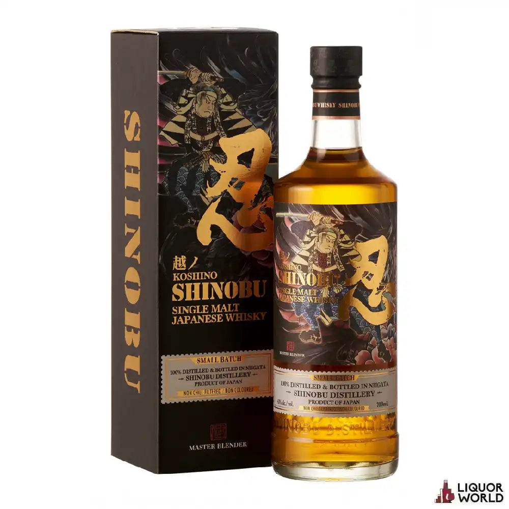 The Shinobu Single Malt First Small Batch Japanese Whisky 700mL Experience the artistry of Japanese whisky with The Shinobu Single Malt First Small Batch Japanese Whisky 700ml. Crafted with precision and dedication, this whisky offers a unique and harmonious flavor profile that reflects the meticulous nature of Japanese distillation. Presented in an elegant 700mL bottle, The Shinobu Single Malt is perfect for those who appreciate the nuanced flavors and tradition of Japanese whisky-making.- Brand: The Shinobu