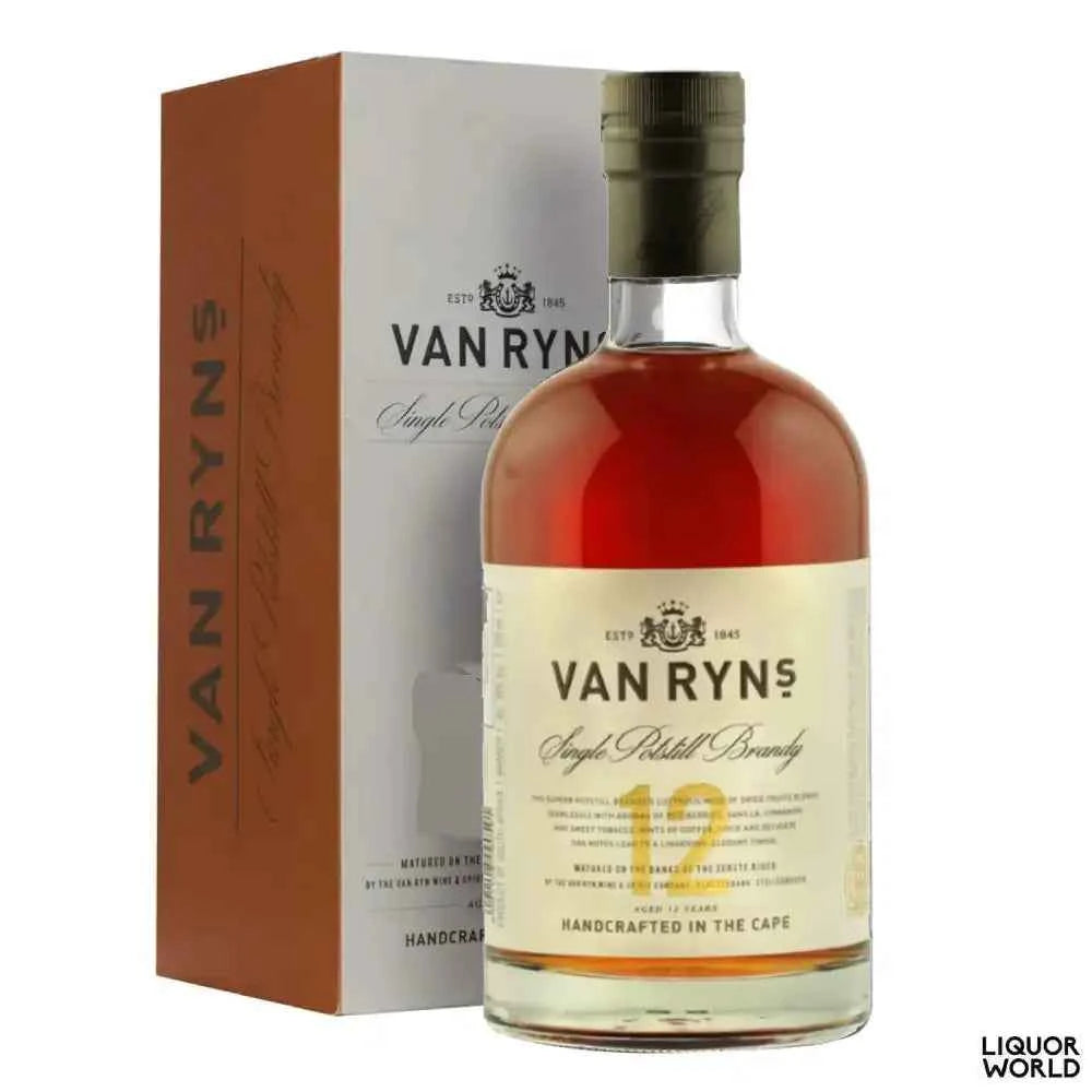 Van Ryn's Single Potstill 12 year old Brandy 750ml In addition to earning regular gold medals at major international shows, Van Ryn's Single Potstill 12-year-old Brandy has won the trophy for the ‘Worldwide Best Brandy’ six times to date, three times at the International Wine & Spirit Competition (IWSC) and three times at the International Spirits Challenge, officially confirming its status as the best brandy in the world. Tasting Notes: This superb potstill brandy’s lustrous nose of dried fruits blends seamlessly with aromas of red berries, vanilla, cinnamon and sweet tobacco. Hints of coffee spice and delicate oak notes lead to a lingering, elegant finish. NOTE: The images shown are for illustration purposes only and may not be an exact representation of the product.Van Ryn's Single Potstill 12 year old Brandy 750ml