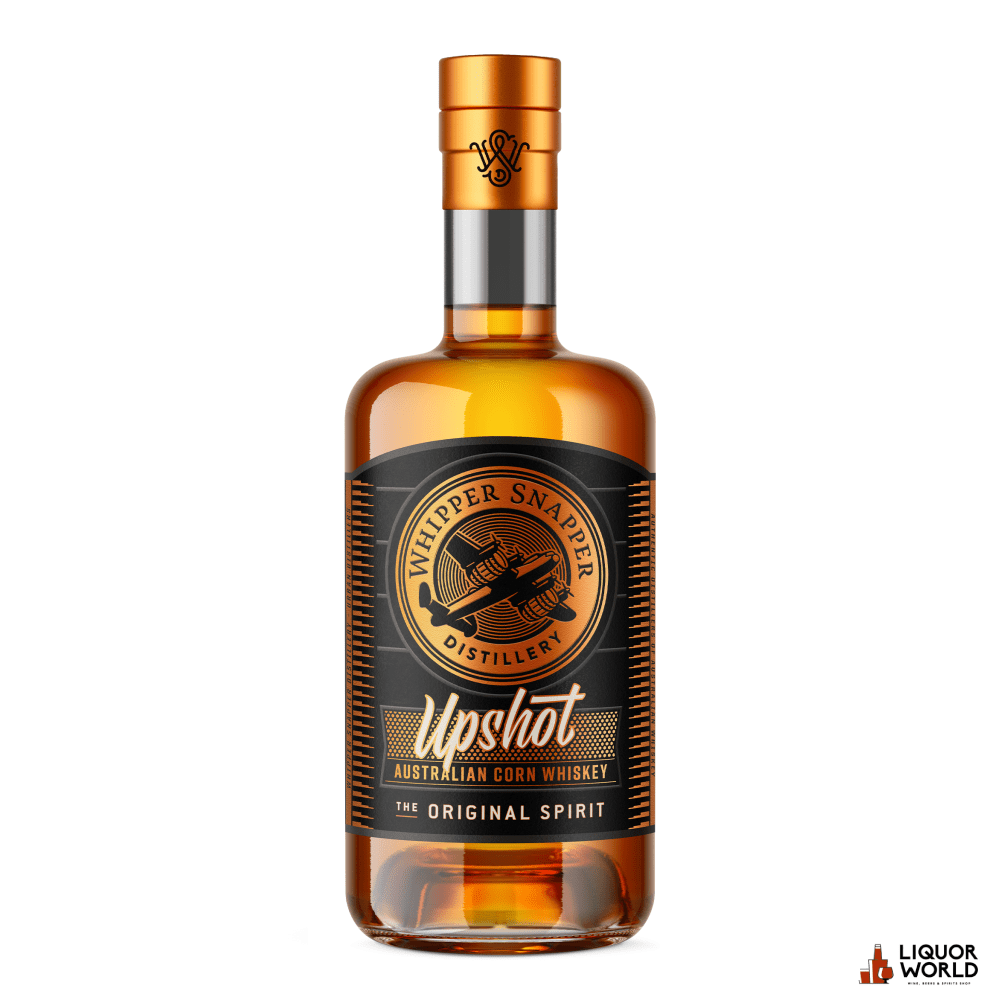 Whipper Snapper Upshot Original is a proudly Australian corn whiskey that redefines tradition with local ingenuity. Distilled in small batches in Perth, Western Australia, Upshot is made using a unique mash bill of corn, wheat, and malted barley—all sourced locally. This flagship expression is matured in virgin American oak barrels and bottled at 43% ABV, offering a smooth, full-bodied whiskey with notes of sweet grain, vanilla, and spice. Its rich character and drinkability make it a modern classic for both new and seasoned whiskey enthusiasts.