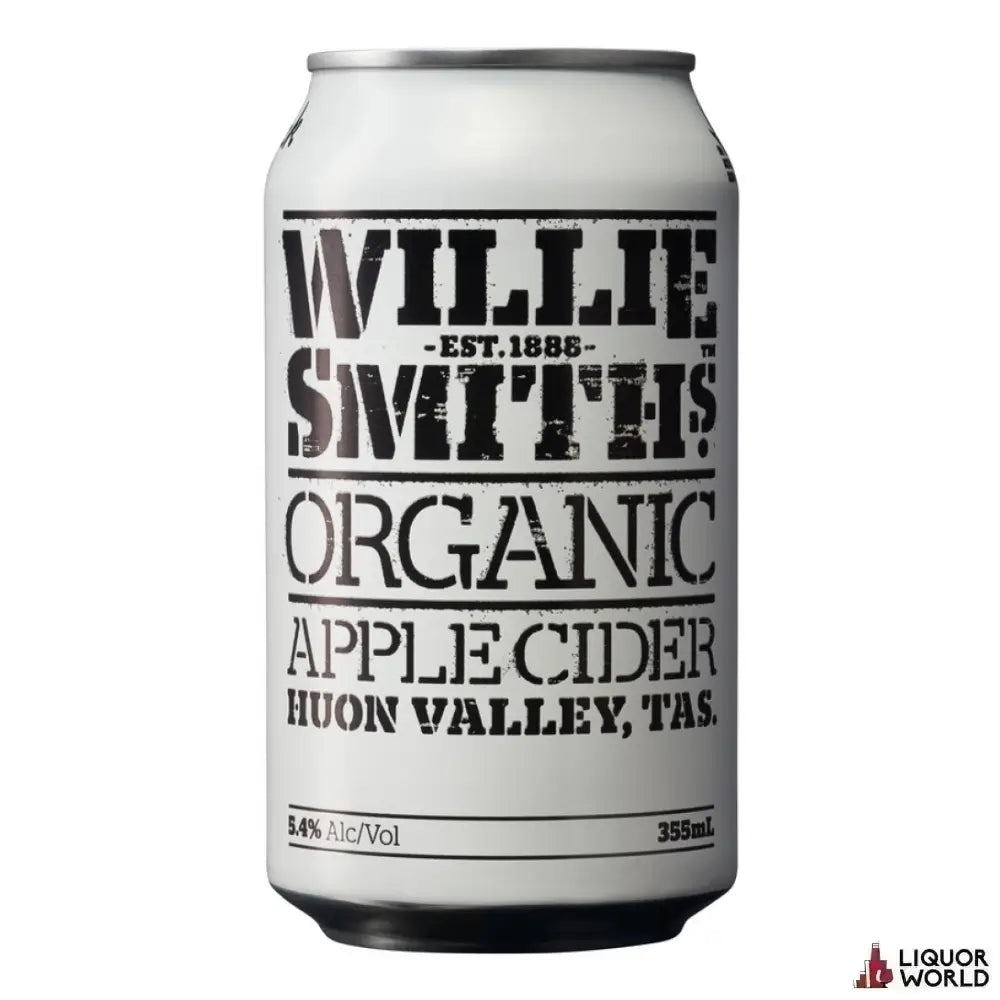 Willie Smith Organic Apple Cider 355mL (16 Pack) Experience the natural goodness of Tasmania with Willie Smith Organic Apple Cider, a premium beverage crafted from certified organic apples grown in the lush Huon Valley. This award-winning cider delivers a crisp, refreshing taste with a harmonious balance of sweetness and acidity, showcasing the authentic flavors of its heritage apple varieties.- Brand: Willie Smith